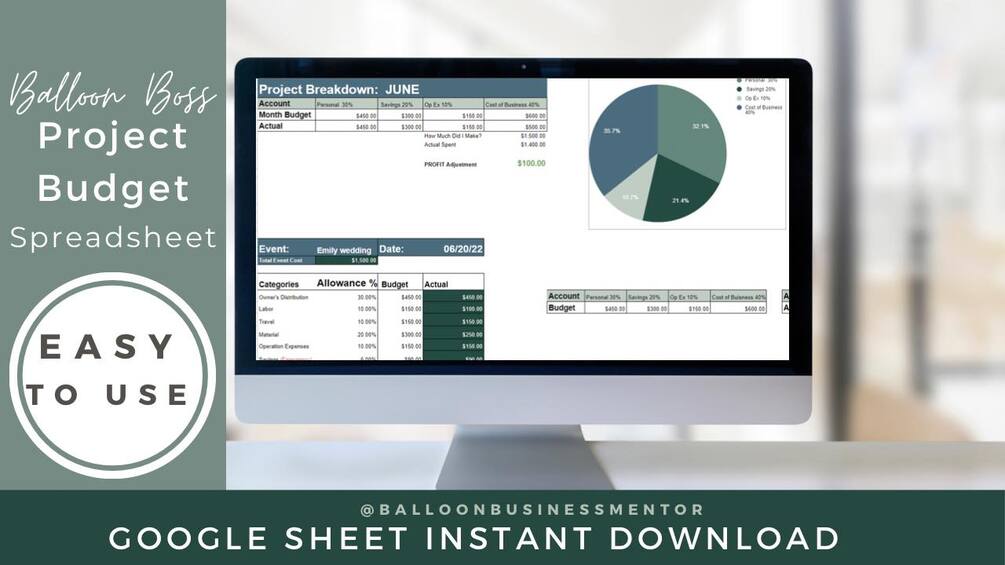 I've created a simple to use automatic project/business budget calculator with you in mind: the Balloon Boss who's got the art of the business down, but just isn't sure how to FINALLY start paying themselves and track their profitability.